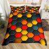 Honeycomb Duvet Cover Set Twin Queen Size, Geometric Hexagon Bedding Set For Boys Men Room Decor, Modern Style Comforter Cover