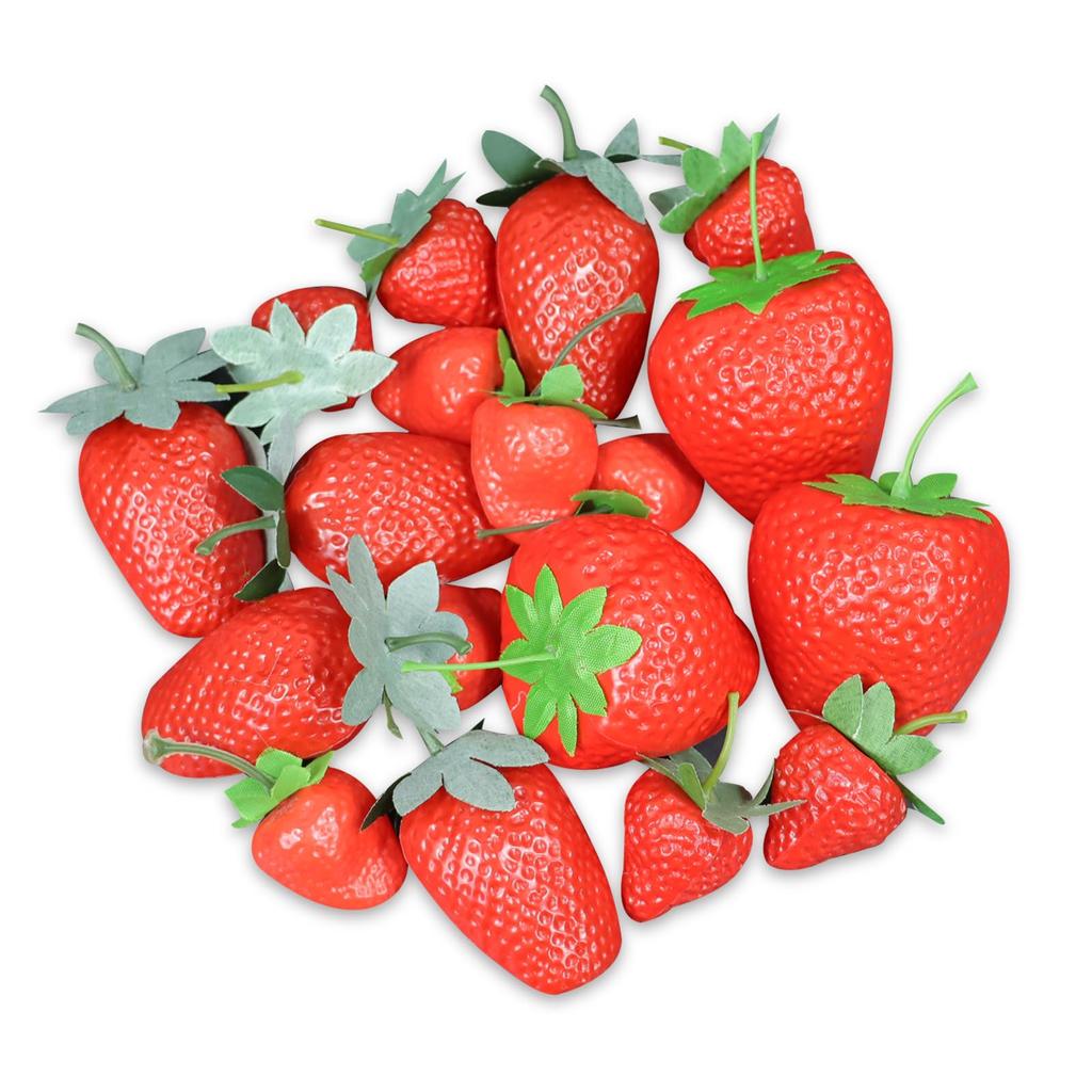 siawadeky 18-Piece Plastic Artificial Strawberry Sample Set, Food Model, Realistic Fake Strawberry Model for Photography Props, Display, Room Decor,