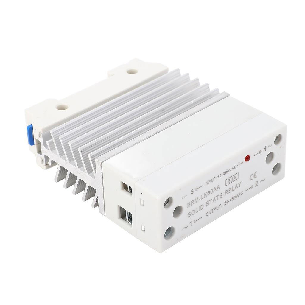 Single Phase SSR Module, 60A State Relay, 70-280V AC to 24-480V AC, with Heat Sink for Standard 35mm Rail Mounting Design, Moisture Resistance