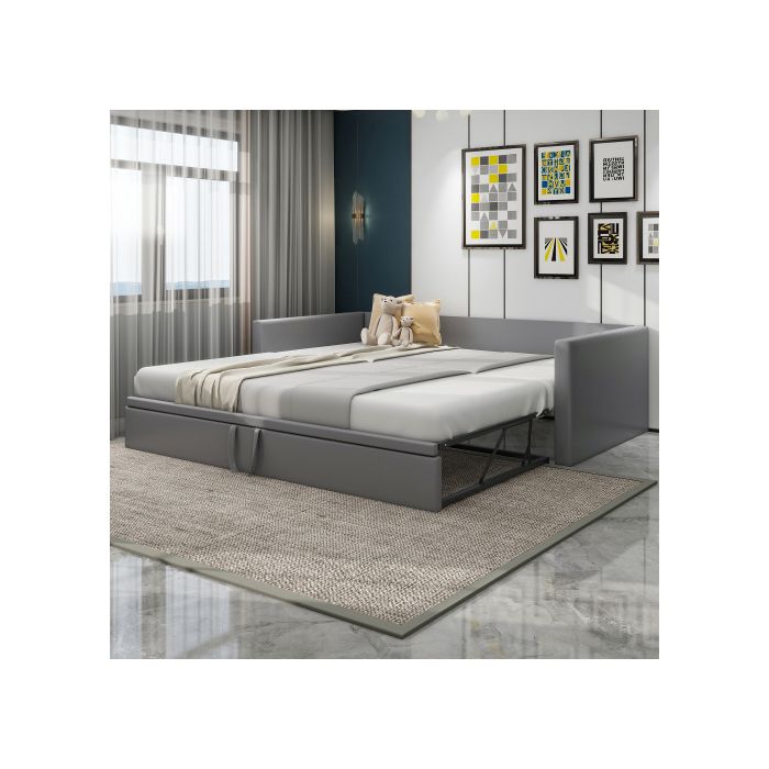 Canapé-lit extensible - 90/180*200 cm - Gris - Lattes en bois - Design peu encombrant