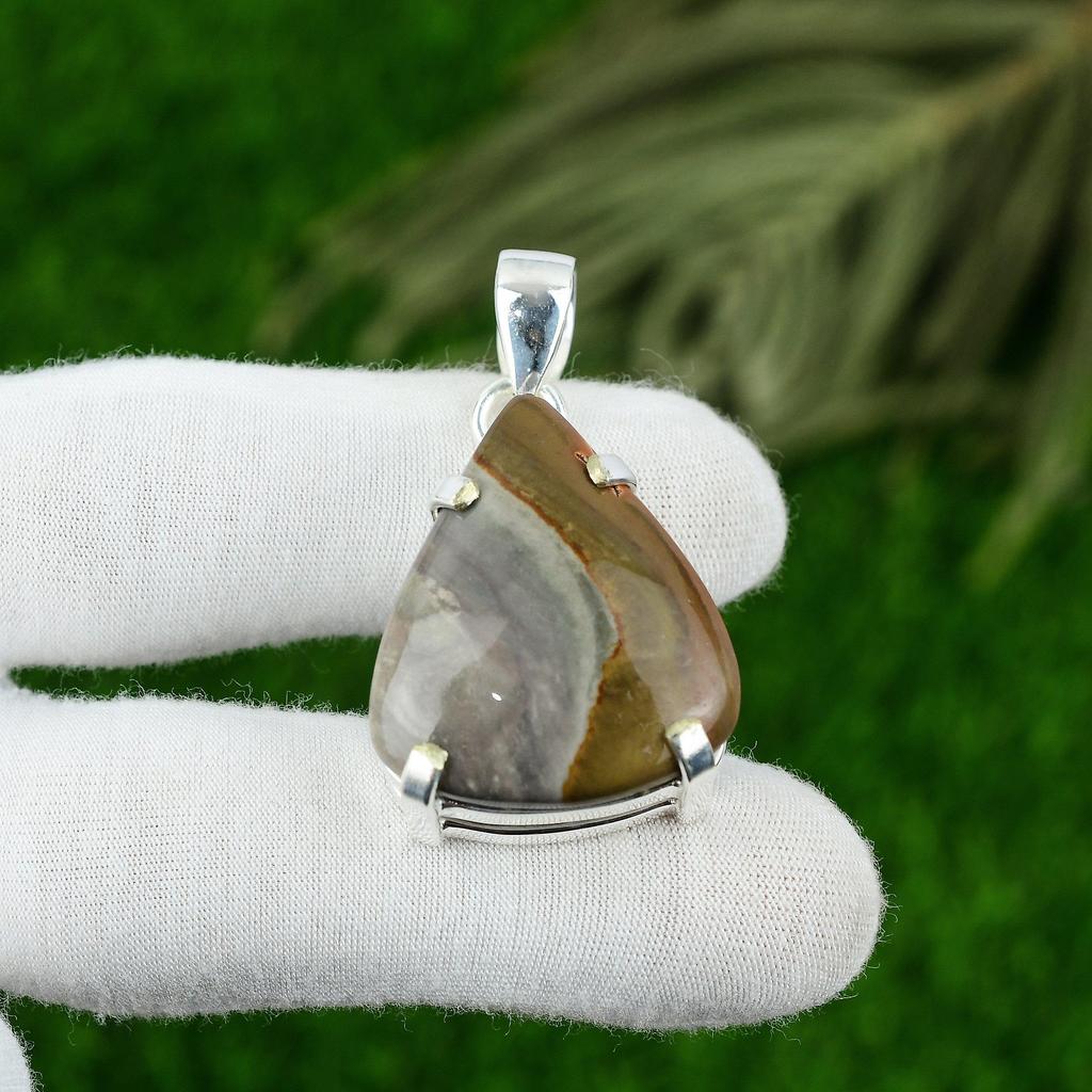 Naturalny Polichromowany Jaspis Wisiorek z Kamienia Szlachetnego Srebro Próby 925 Biżuteria Indyjska
