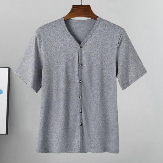 Ta męska koszulka jest wykonana z miękkiej i oddychającej tkaniny poliestrowej, co zapewnia wygodę przez cały dzień. Ta uniwersalna bluzka z krótkim rękawem i dekoltem w serek, zapinana jednorzędowo, idealnie nadaje się do noszenia na co dzień. Prosty, jednolity kolor sprawia, że łatwo go zestawić ze spodniami casualowymi, dżinsami lub trampkami, tworząc fajny i modny letni wygląd.