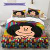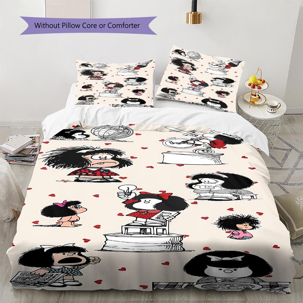 Pościel z wzorem Mafaldy, Zestaw kołdry Poszewka na kołdrę Poszewka na poduszkę Domowy prezent urodzinowy (1 * poszwa na kołdrę + 2 * poszewki na poduszki, bez rdzenia)