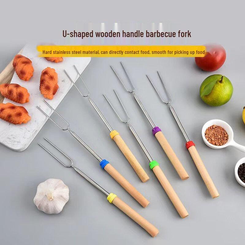 ZISIZ Wooden Handle Retractable BBQ Roasting Forks