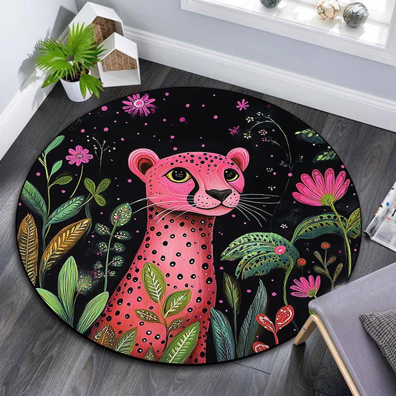 Pink Leopard Round Area Rug,Carpet Rug for Living Room Bedroom Sofa Playroom Decor,Non-slip Floor Mat