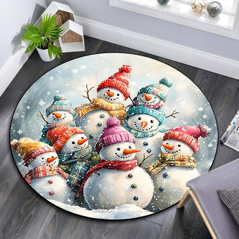 Snowmen Round Area Rug,Carpet Rug for Living Room Bedroom Sofa Playroom Decor,Non-slip Floor Mat