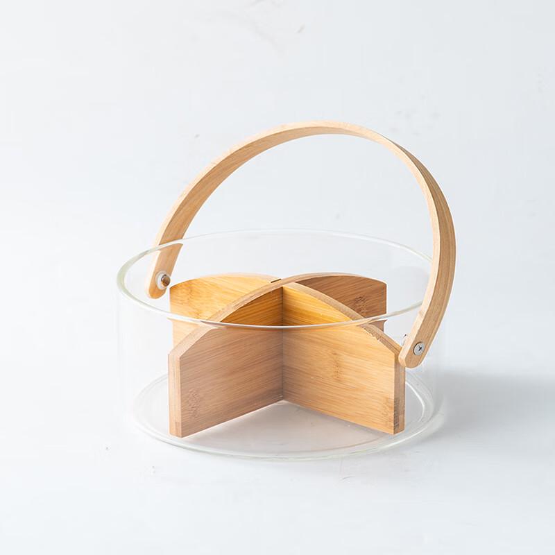 Qianxing Glass Bamboo Handle Ice Bucket & Fruit Plate Set