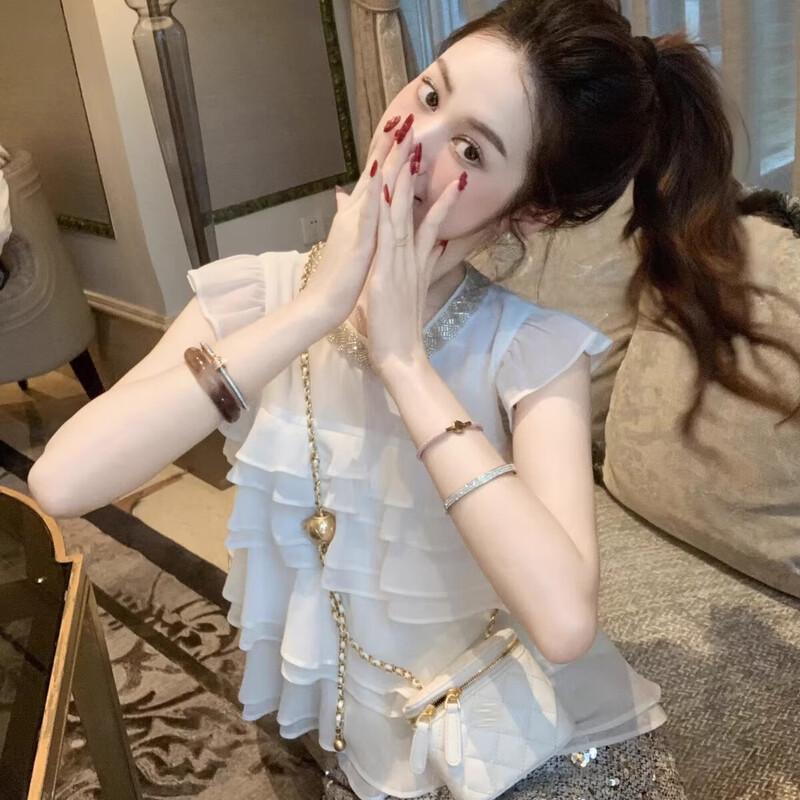 Elegancka damska bluzka z szyfonu z falbankowymi rękawami