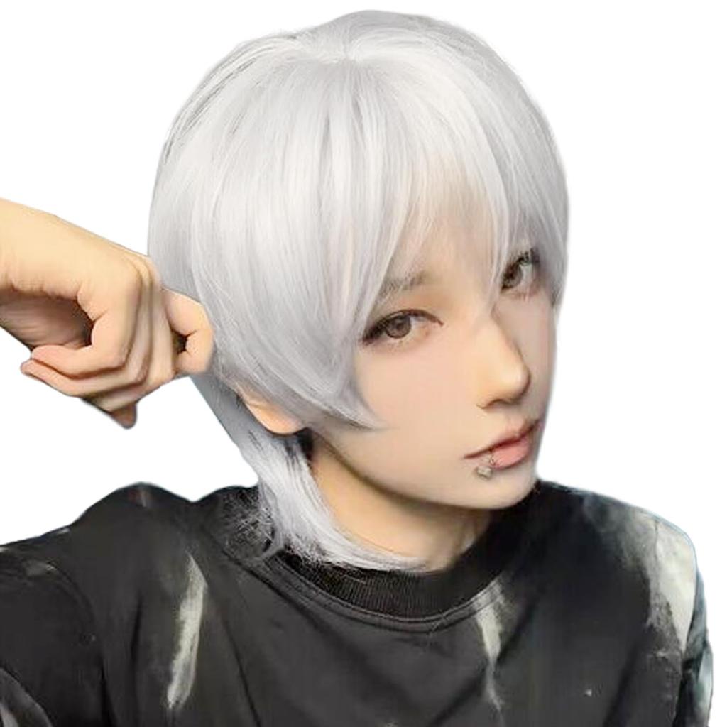 PEACOCO Krótka Peruka Męska, Blond, Wilcze, Czarne Włosy, Cosplay, Sztuczne Białe Włosy, Yuki White