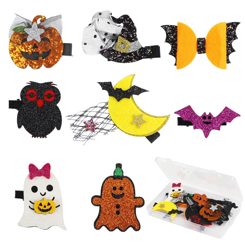 FINGOOO Halloweenowe Akcesoria do Włosów Zestaw 8 Sztuk, Spinki do Włosów, Klipsy do Włosów, Ozdoby do Włosów, Cosplay, Kostiumy, Unisex, Urocze (Halloween A)