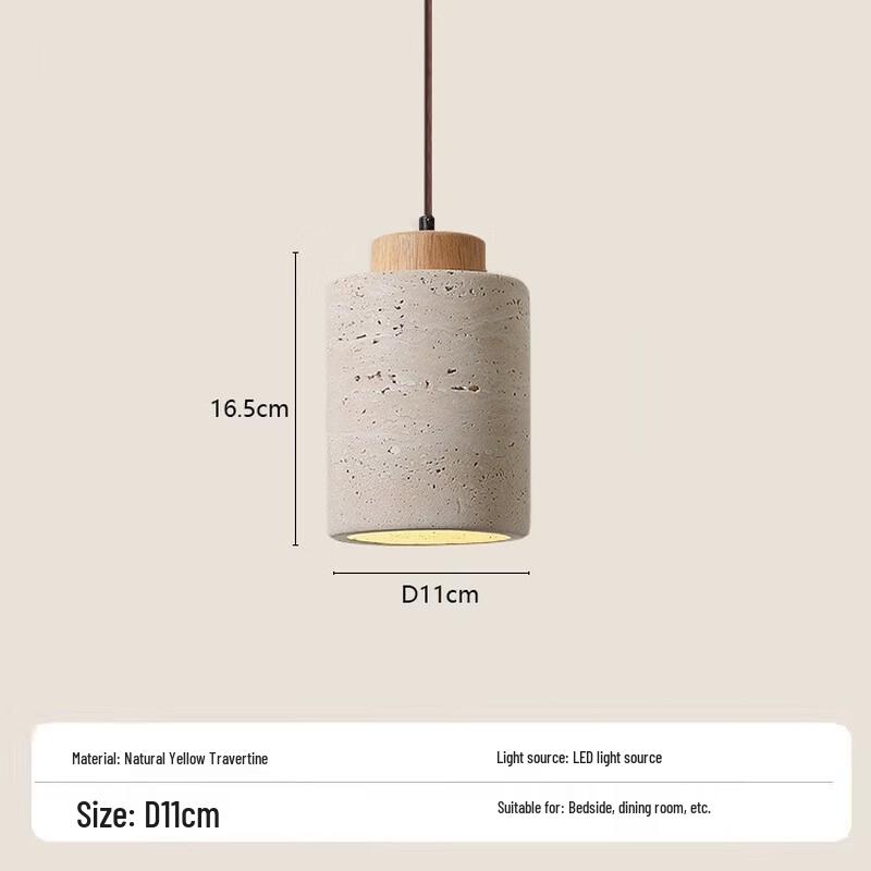 Nordic Yellow Travertine & Wood Long Pendant Lamp
