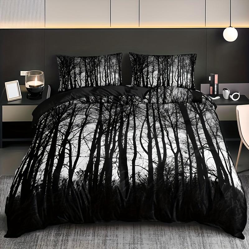 3pcs Black Tree Forest Duvet Cover Set Bedding Set Pillowcases No Filling High-Definition Print Queen King Size for Home Bedroom