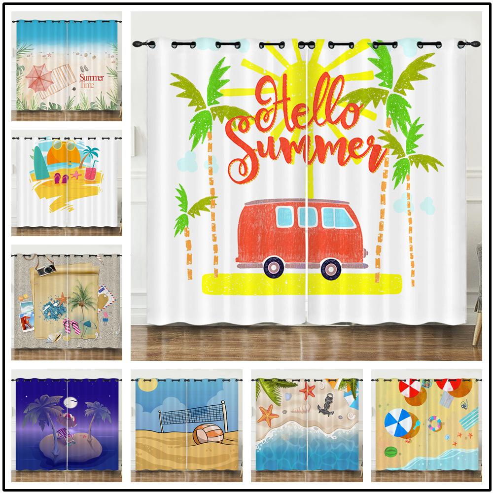 Zasłony Ocean Plaża Wakacje Ilustracja 3D Cyfrowy Druk Zasłona zaciemniająca Przelotki