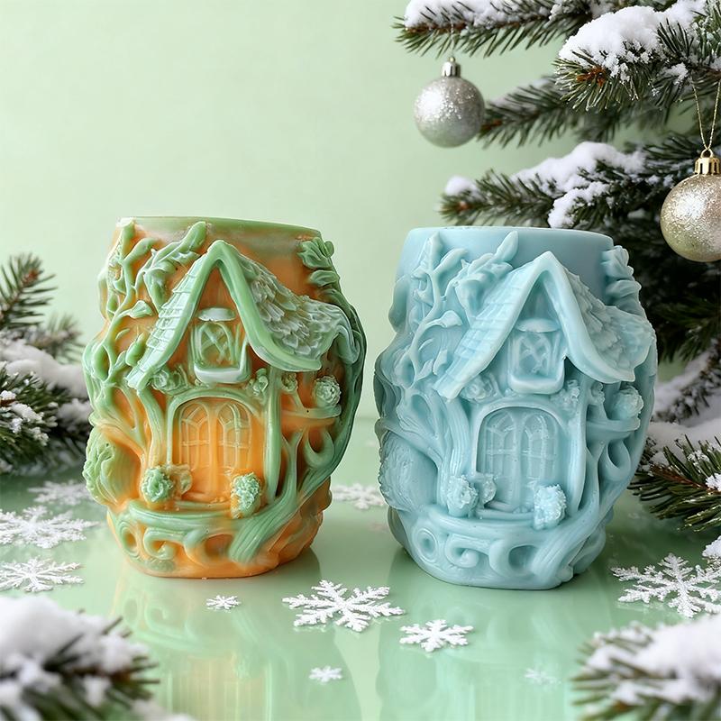 Forma Silikonowa na Świecę Reliefowa Kolumna Dom Forma DIY Pnącza Dom na Drzewie Ornament Gipsowy do Aromaterapii Forma Materiały do Wyrobu Świec z Wosku Sojowego