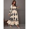 Elegancka sukienka z dekoltem V, plisowana, w drukowany wzór, dopasowana, na wiosnę 2026, dla kobiet