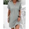 Letnia sukienka damska z dekoltem w kształcie litery V, zapinana na guziki, z krótkimi rękawami, luźna, jednokolorowa bluza, na co dzień, na co dzień, Mini sukienka