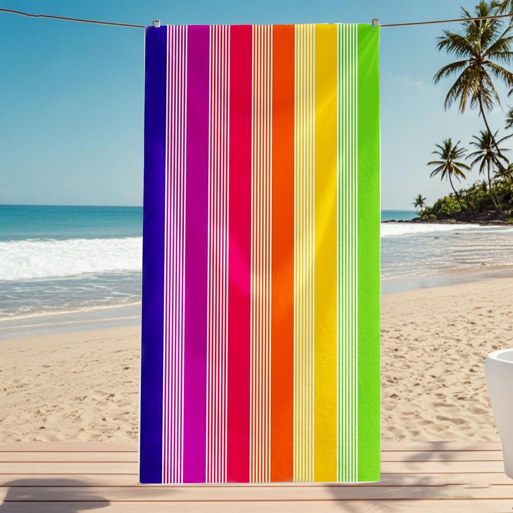 Extra Large Rainbow Stripe Beach Towel - Super Soft Microfiber Quick-Dry Wrap Towel