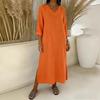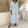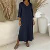 Damska sukienka bawełniano-lniana z dekoltem V, rękawem 3/4, fasonem A, na sezon Wiosna/Lato 2026 - Casualowa i luźna
