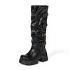 Women Platform High top Spring Fashion Designer Knee Chelsea Boots with Buckle Brand Party Black Brown