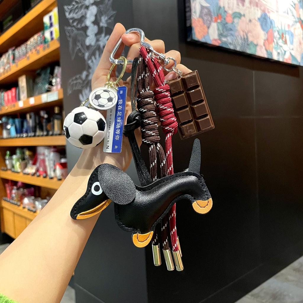 Miu Series Leather Dachshund Dog Bag Pendant Creative Fashion Woven Rope Ins Wind Keychain Student Schoolbag Pendant