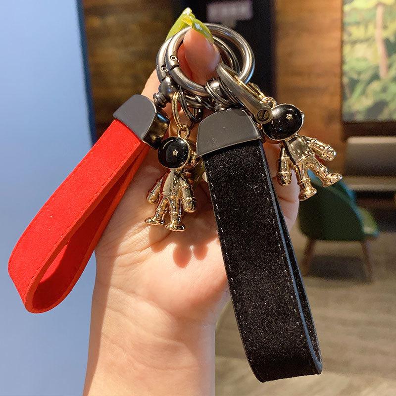 Creative Metal Astronaut Keychain Pendant Women'S Exquisite Pu Leather Car Keychain Pendant Small Gift