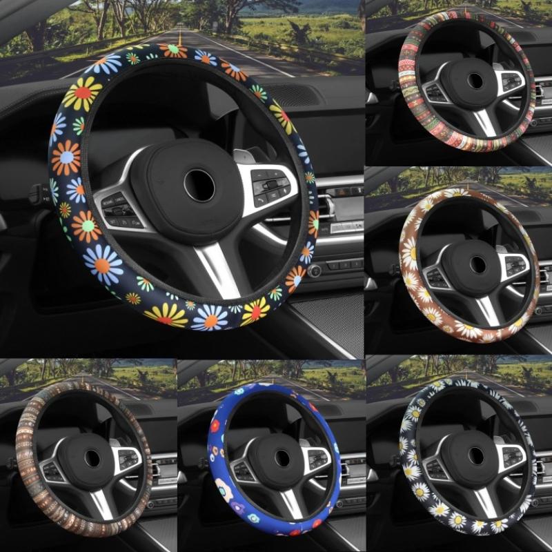 Car steering wheel cover Elastic Floral Steering Wheel Cover- No Inner Ring Breathable Non-Slip Ultra-Thin Auto Handle Accessory