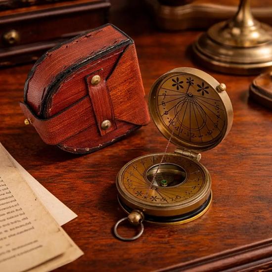 This vintage brass sundial compass is carefully handcrafted from high-quality solid brass, giving it a rich antique finish and durable construction. The detailed engravings and polished surface reflect traditional nautical instruments used by early navigators.