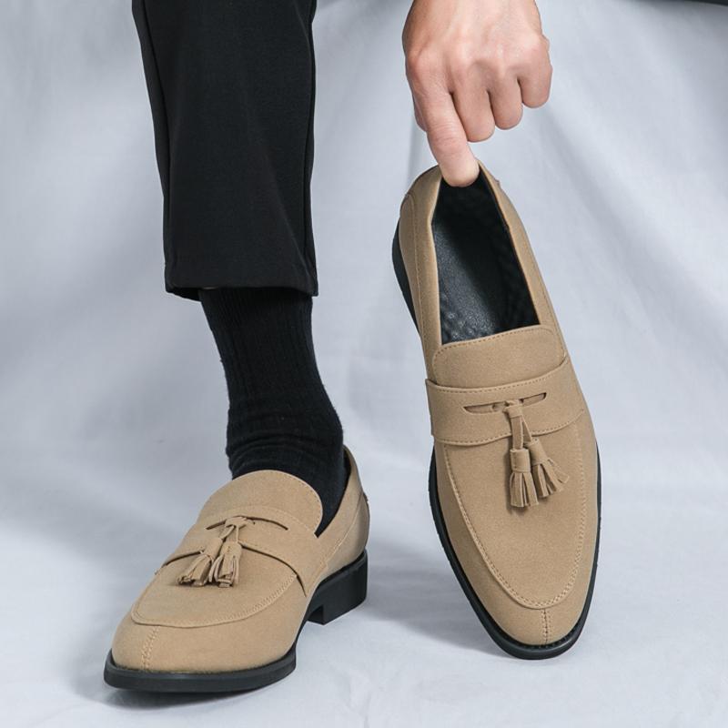 Classic Men's Casual Loafers Driving Shoes Moccasin Fashion Male Comfort Autumn Suede Leather Shoes Men Lazy Tassel Dress Shoes Comfortable Soft Sole