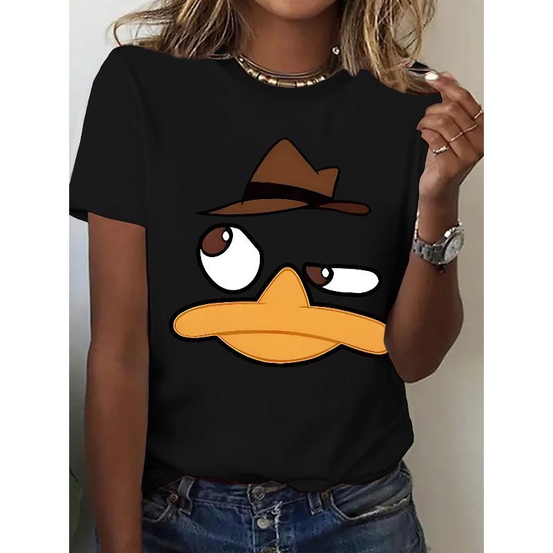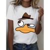 Damska koszulka z grafiką kaczki, z okrągłym dekoltem, krótkim rękawem, całoroczna, codzienna, z zabawnym nadrukiem