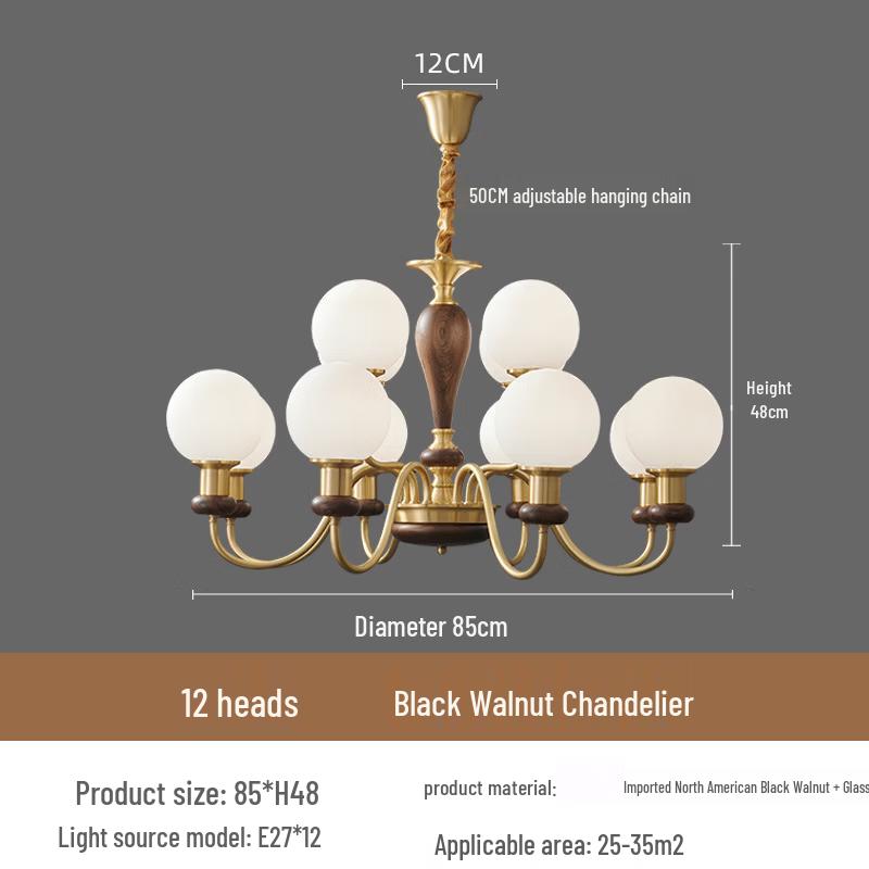 OEING Black Walnut Solid Wood LED Chandelier