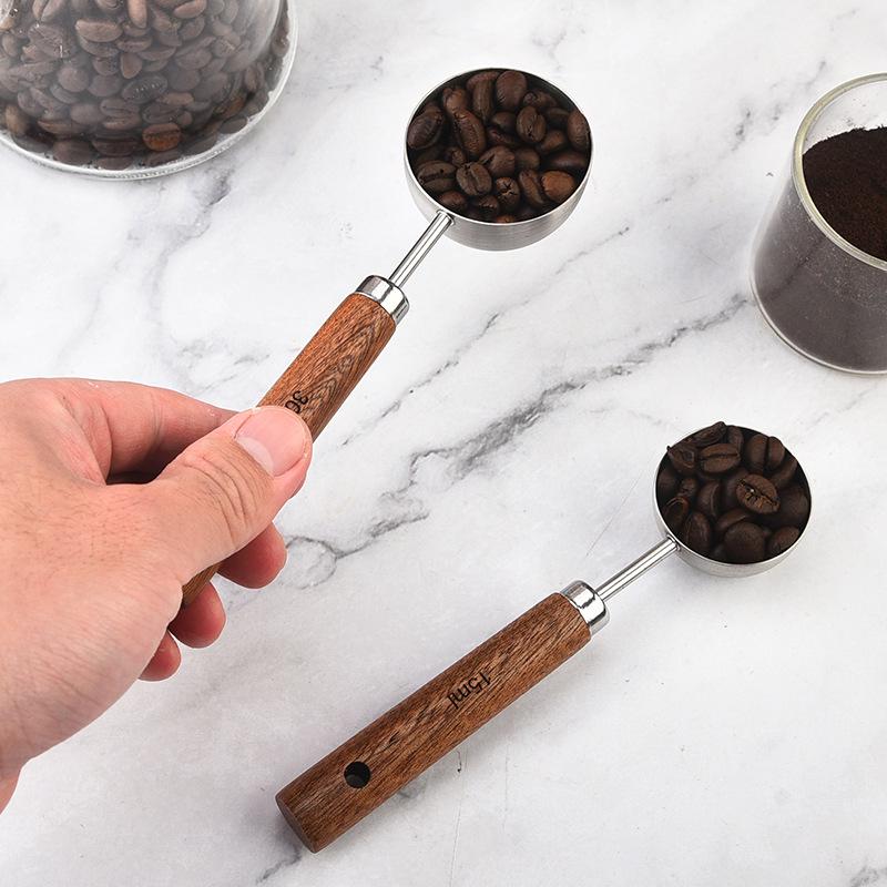 304 Stainless Steel Measuring Spoons with Walnut Handle and Scale - For Coffee, Baking, and Milk Powder