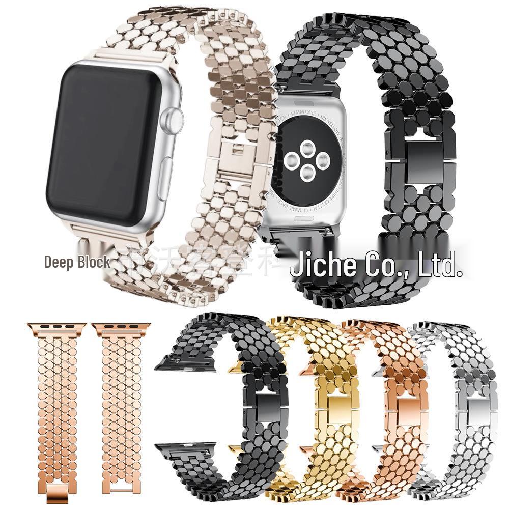 Compatible Fish Scale Metal Strap for Apple Watch: Stainless Steel Honeycomb Band, In Stock.
