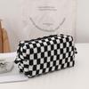 Korean Plaid Knit Makeup & Pencil Storage Bag - Large Capacity Organizer