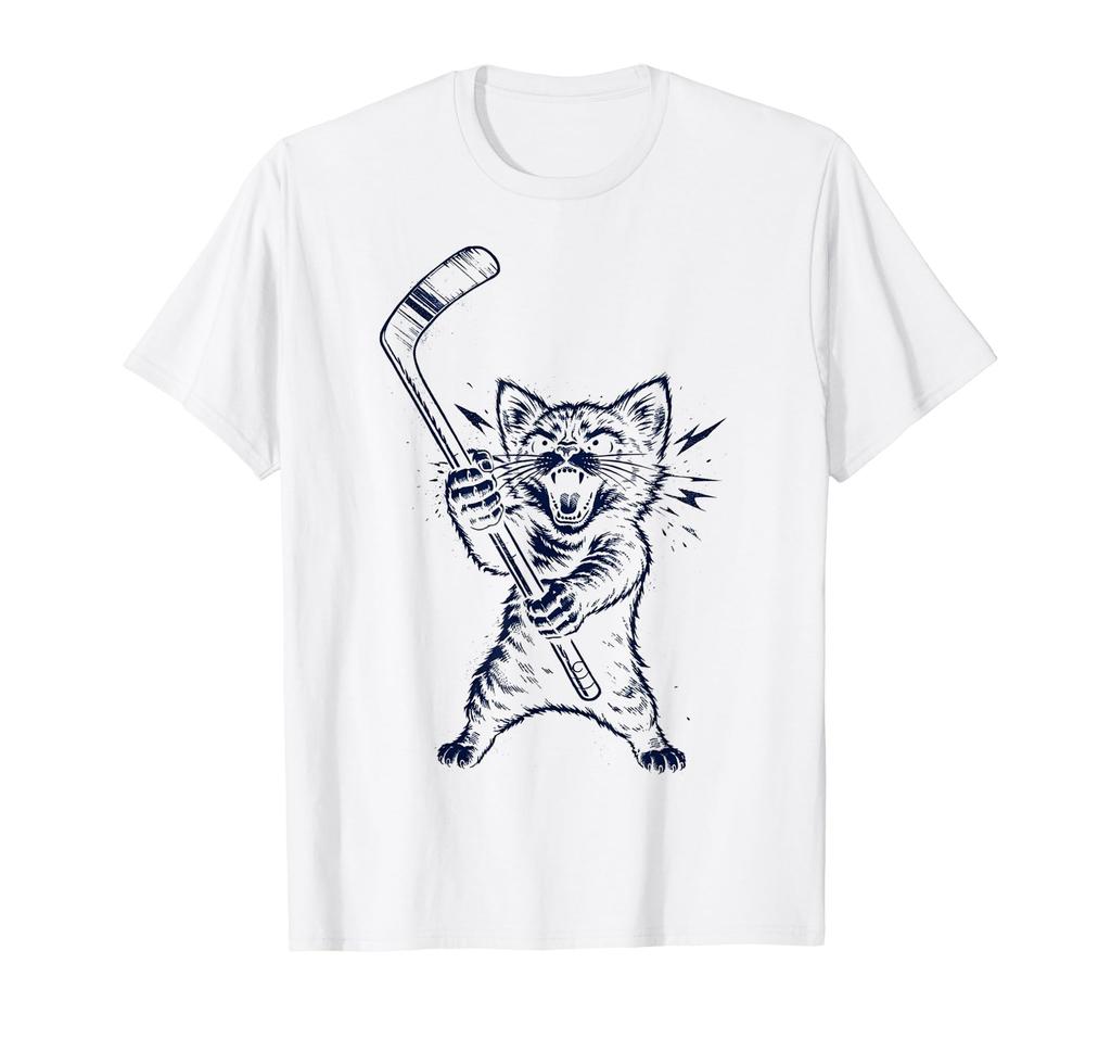 Fierce Hockey Cat Graphic Funny Angry Cat Hockey T-Shirt