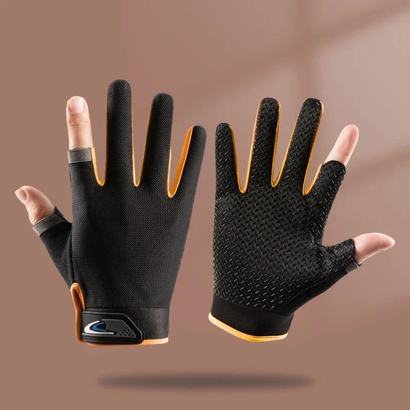 1Pair Anti-Slip Breathable Fishing Gloves Two-Finger Cut Sport Cycling Mittens for Men And Women Fashionable Outdoor Gear