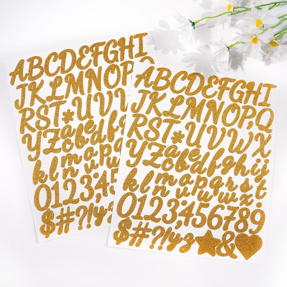 5 Arkuszy Angielski List a-Z Brokatowe Naklejki z Literami Błyszczące Srebrne Naklejki z Literami i Cyframi Scrapbooking