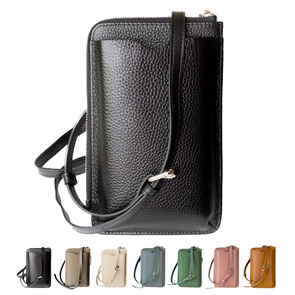 masamilk Genuine Leather Smartphone Pouch, Smartphone Shoulder Bag, Wallet Shoulder Bag, Cowhide Leather, Women's (Black)