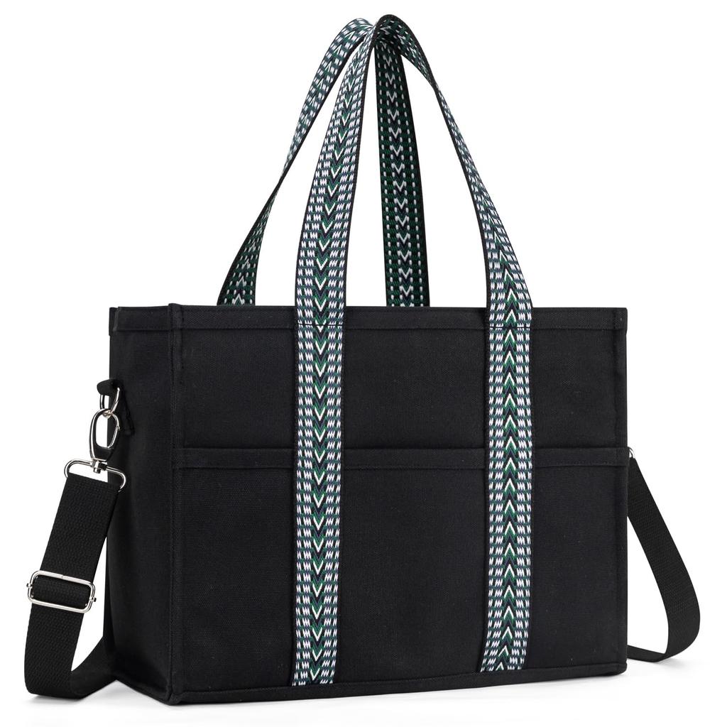 Yukiyumi Women's Canvas Tote Bag, 2-Piece Set, A4 Size, Large Capacity, Dividers, Freestanding, ShoulderCrossbody, 2-Way, Perfect for Commuting,
