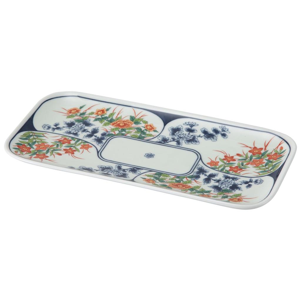 Hasami ware rectangular approximately 23cm Nishiki Madori flower made in microwave and dishwasher product number 30893 plate, long, pattern, Japan,