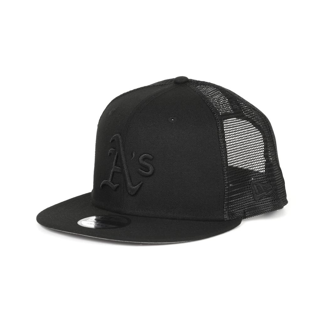 New Era MLB 9FIFTY Black on Black Oakland Athletics Mesh Snapback Free Size Cap,