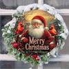 Rustic Metal Santa Claus Cardinal Wreath Sign Merry Christmas Wall Decor 2D Holiday Door Hanging For Home Bar Cafe Garage