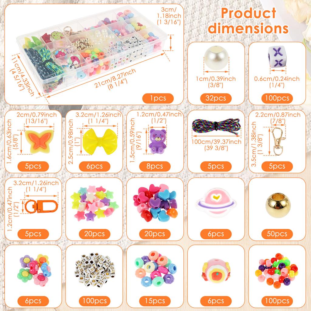 DIY Beaded Keychain Making Kit Acrylic Bow Bear Heart Star Letter Flower Cartoon Rhombus and Flat Beads Key Chain Charm Supplies