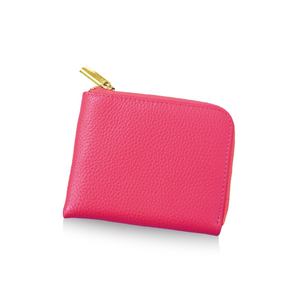 SWINGPLUS Mini Wallet, Genuine Leather, Bifold, L-Zip, Grained Finish, Card Case, Women's, 10cm x 12cm x 2cm (Pink)