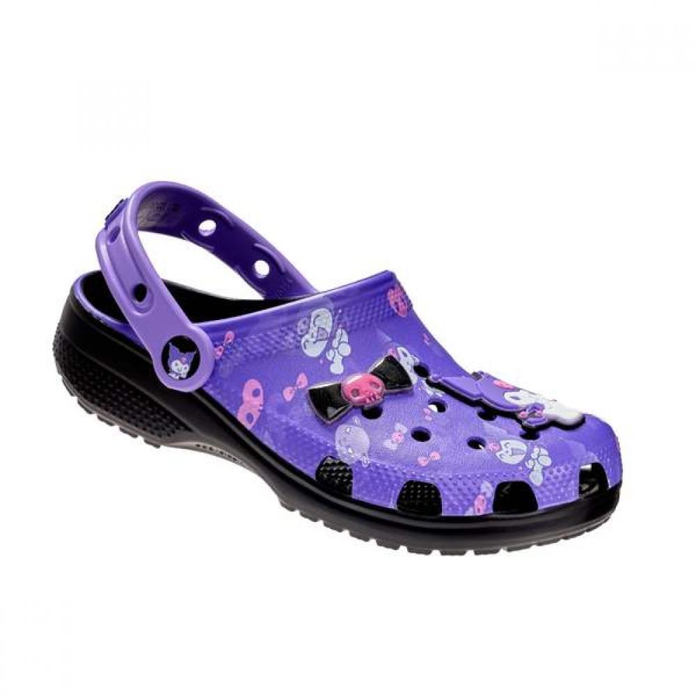 The Crocs Tobax Kuromi Classic Clog is a special product created in collaboration with the popular character Kuromi. Featuring a purple base with a cute Kuromi design, it is composed of an attractive design that children will love. It uses Iconic Crocs Comfort™ technology to provide a soft and flexible fit and boasts a slip-resistant material for enhanced stability. This product holds special value as a limited-season item.