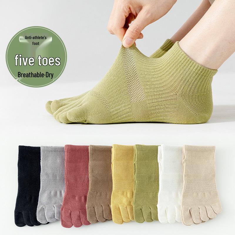 Damskie oddychające bawełniane skarpetki z siateczki na palce - Pięciopalczaste, Przeciw otarciom, Jednokolorowe, Krótkie letnie skarpetki sportowe