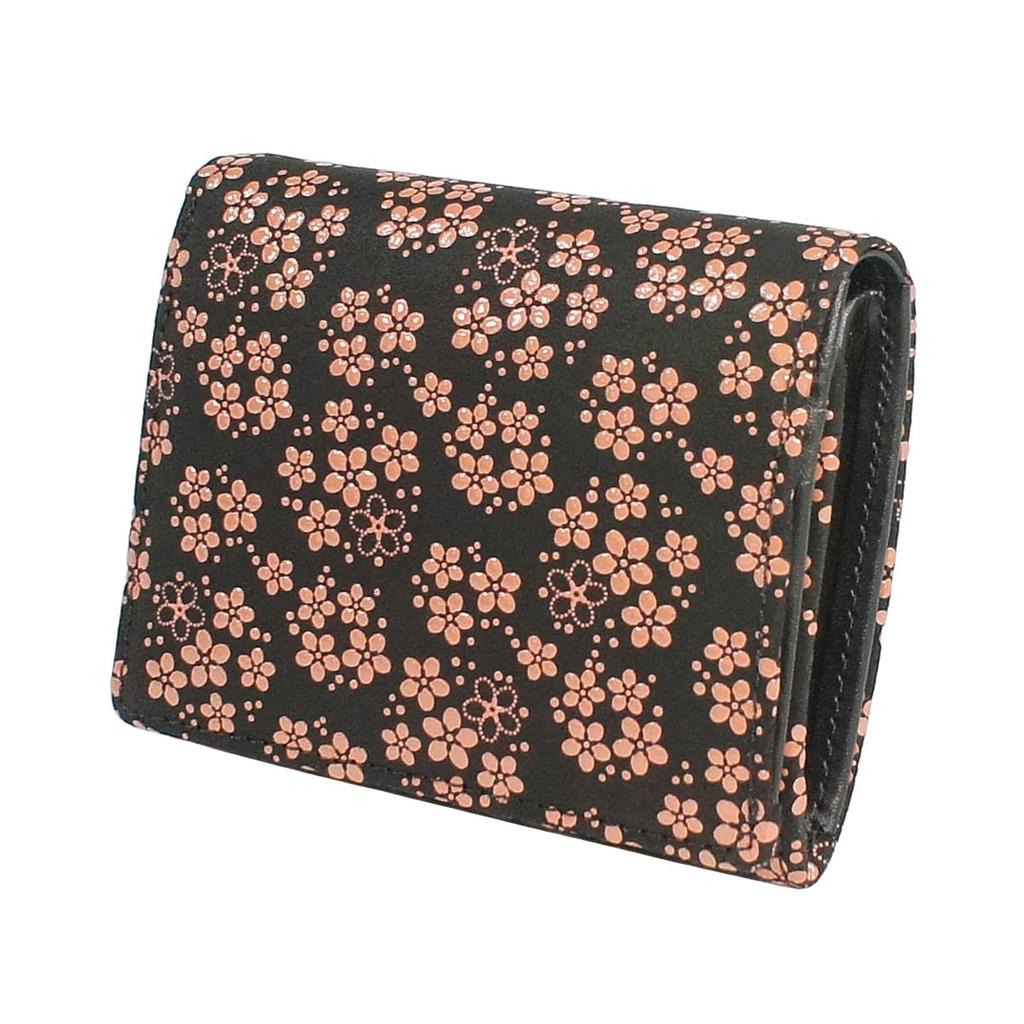 Indenya Inden Bifold Wallet with H-shaped Bill Compartment and Box-Shaped Coin Purse, Deerskin Leather, Black with Pink Lacquer, Forget-Me-Not