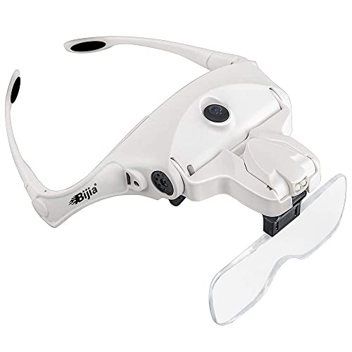 Bijia Glasses Magnifier, Upgraded USB Rechargeable Head Magnifier with LED Light and Elastic Band, Dual-Use Magnifying Glass for Crafts, Reading, and