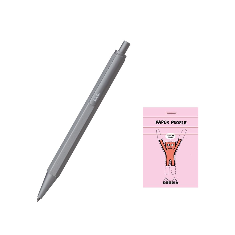Rhodia Script Ballpoint Hexagonal Aluminum Hairline Low Viscosity RHODIA 11 with Block Rhodia Pen, 0.7mm, Barrel, Body, Finish, Oil-Based Ink, Silver,