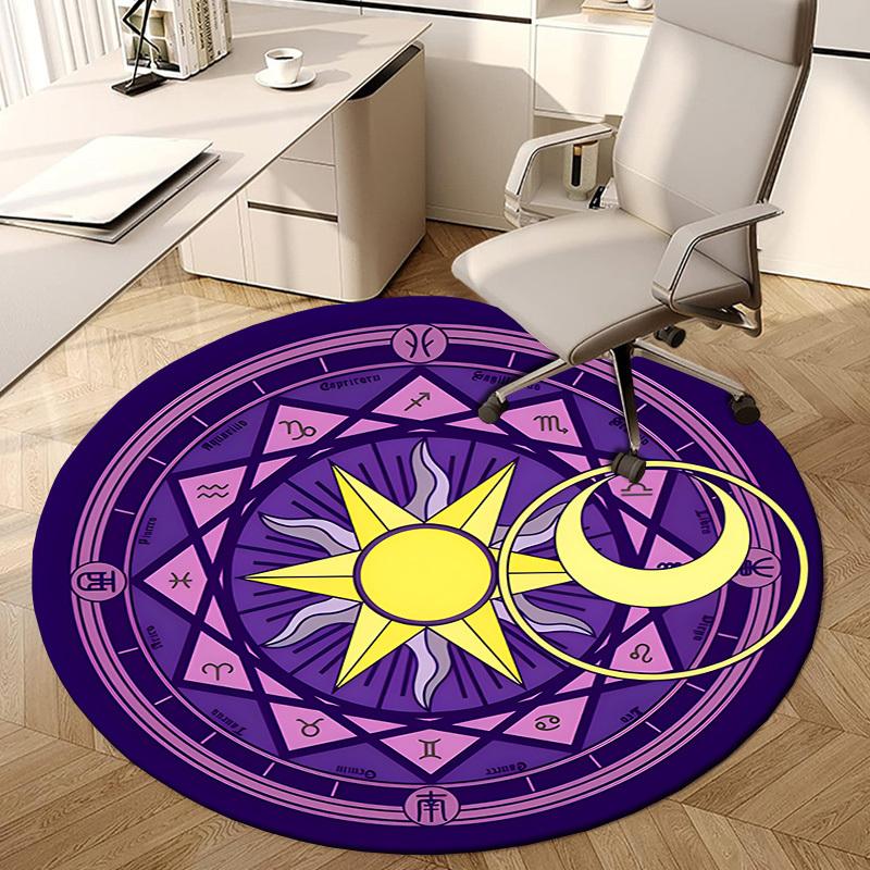 1pc Astrological Mandala with Sun and Moon Symbols Round carpet, Made of Polyester,Perfect for Decorating Office Chairs, Living Rooms fplt074