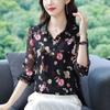 Spring and Summer Shirt Collar Printed Chiffon Blouse Loose Slim Women's Long Sleeve Floral Bottoming Top